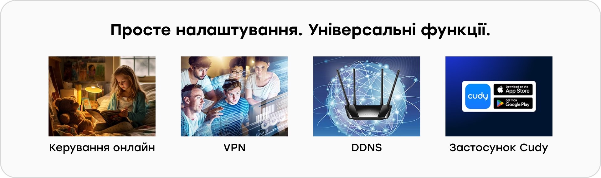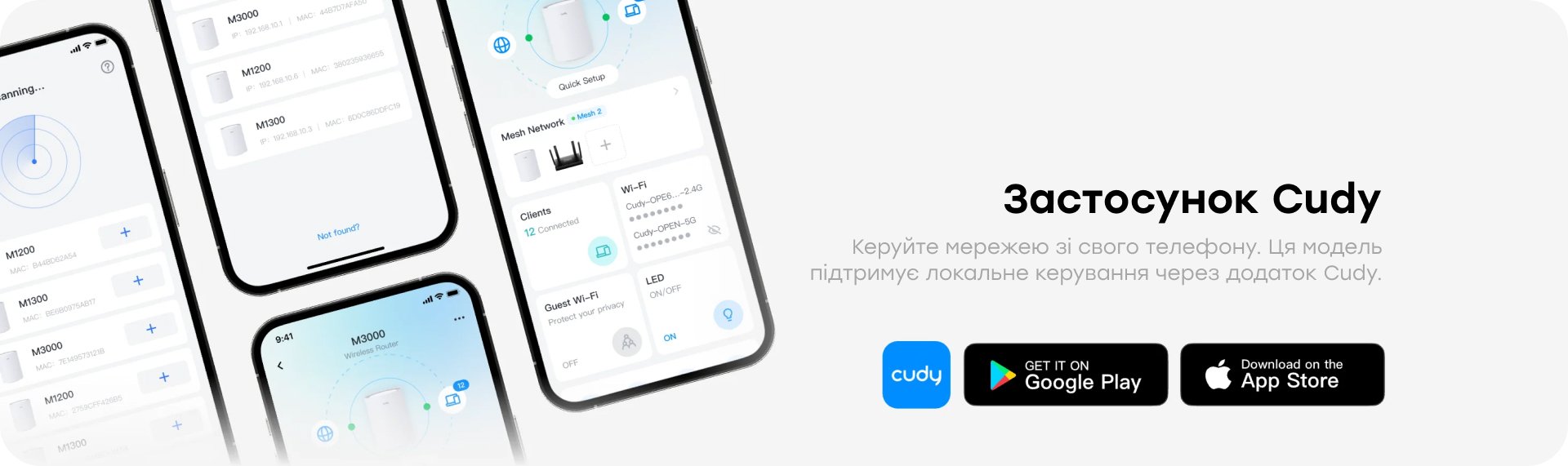 • Поддержка технологии Cudy Whole Home Mesh расширяет зону WiFi покрытия для всего дома. Поддержка Mesh WiFi позволяет объединить несколько WiFi-роутеров или точек доступа в бесшовную WiFi-систему, которая создается для устранения зон со слабым сигналом и обеспечения непрерывного покрытия WiFi во всем доме. Mesh-системы предоставляют более высокую скорость передачи данных и надежное соединение всех устройств, подключенных к сети. Устройство, используемое для создания Mesh-системы, представляет собой WiFi-роутер с ретранслятором, с которым данные обмениваются через выделенный канал, не занимая основной WiFi-канал, к которому подключены аксессуары.